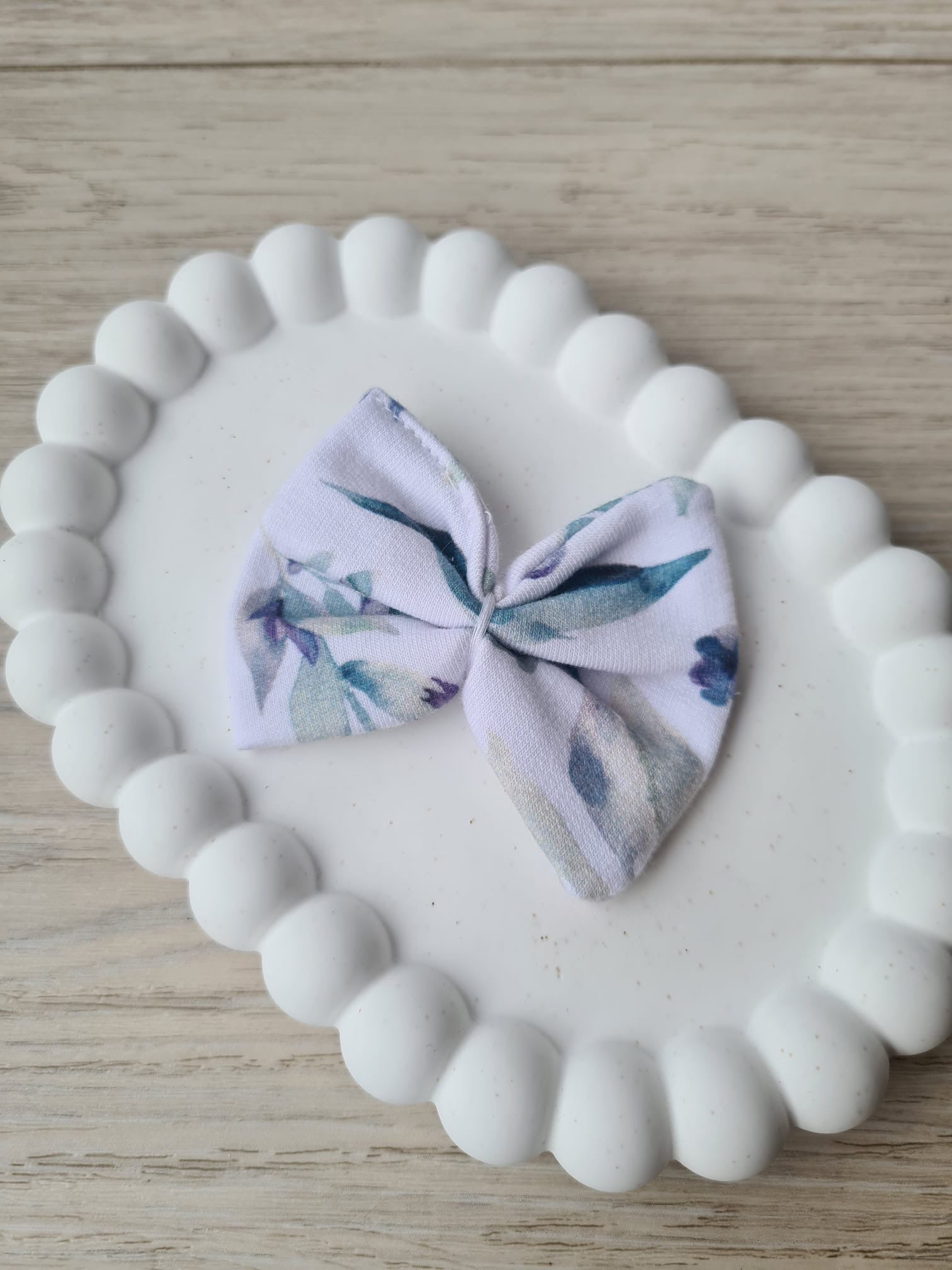 Diese liebevoll gefertigte Haarspange mit zarter Stoffschleife ist ein wunderschönes Accessoire für kleine (und große) Blumenliebhaberinnen. Das feine, florale Muster in harmonischen Farben verleiht jedem Outfit eine romantische Note.