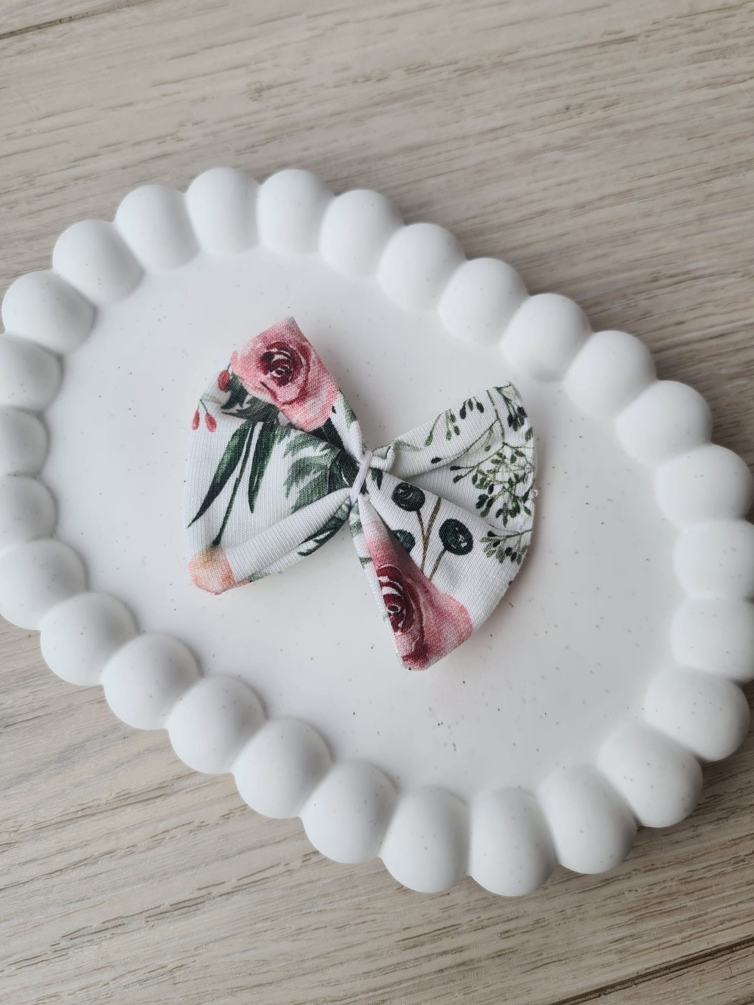Diese liebevoll gefertigte Haarspange mit zarter Stoffschleife ist ein wunderschönes Accessoire für kleine (und große) Blumenliebhaberinnen. Das feine, florale Muster in harmonischen Farben verleiht jedem Outfit eine romantische Note.