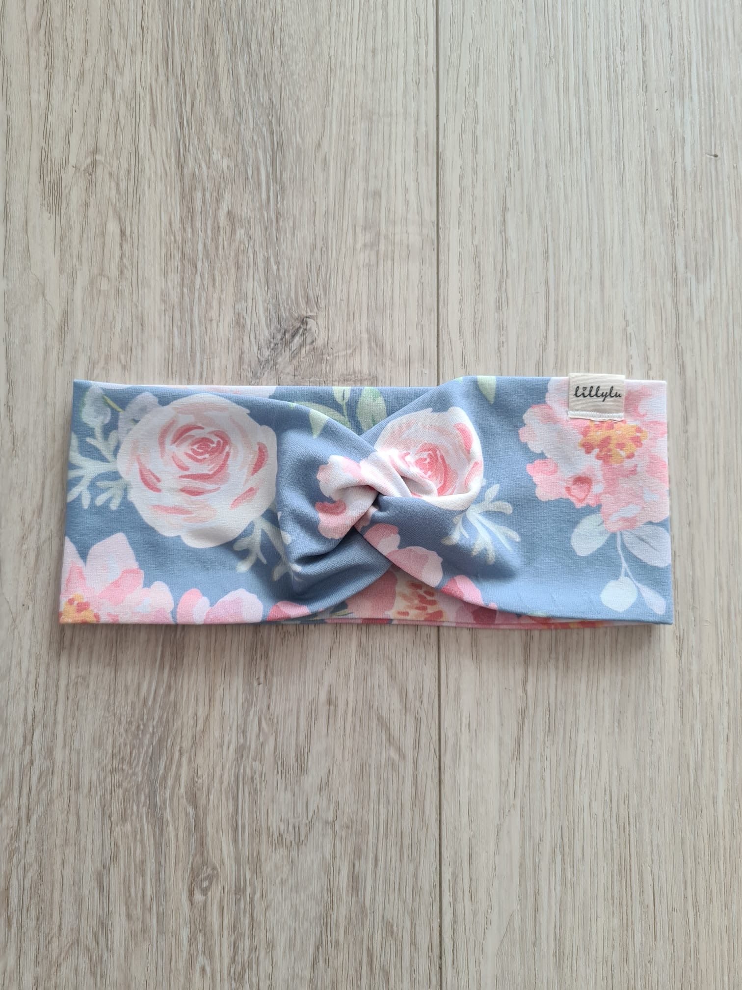 Dieses Stirnband verbindet einen sanften Blauton mit großflächigen Rosen in zarten Rosé- und Cremenuancen. Der Print wirkt leicht und harmonisch und verleiht dem Accessoire eine besondere, feminine Note.