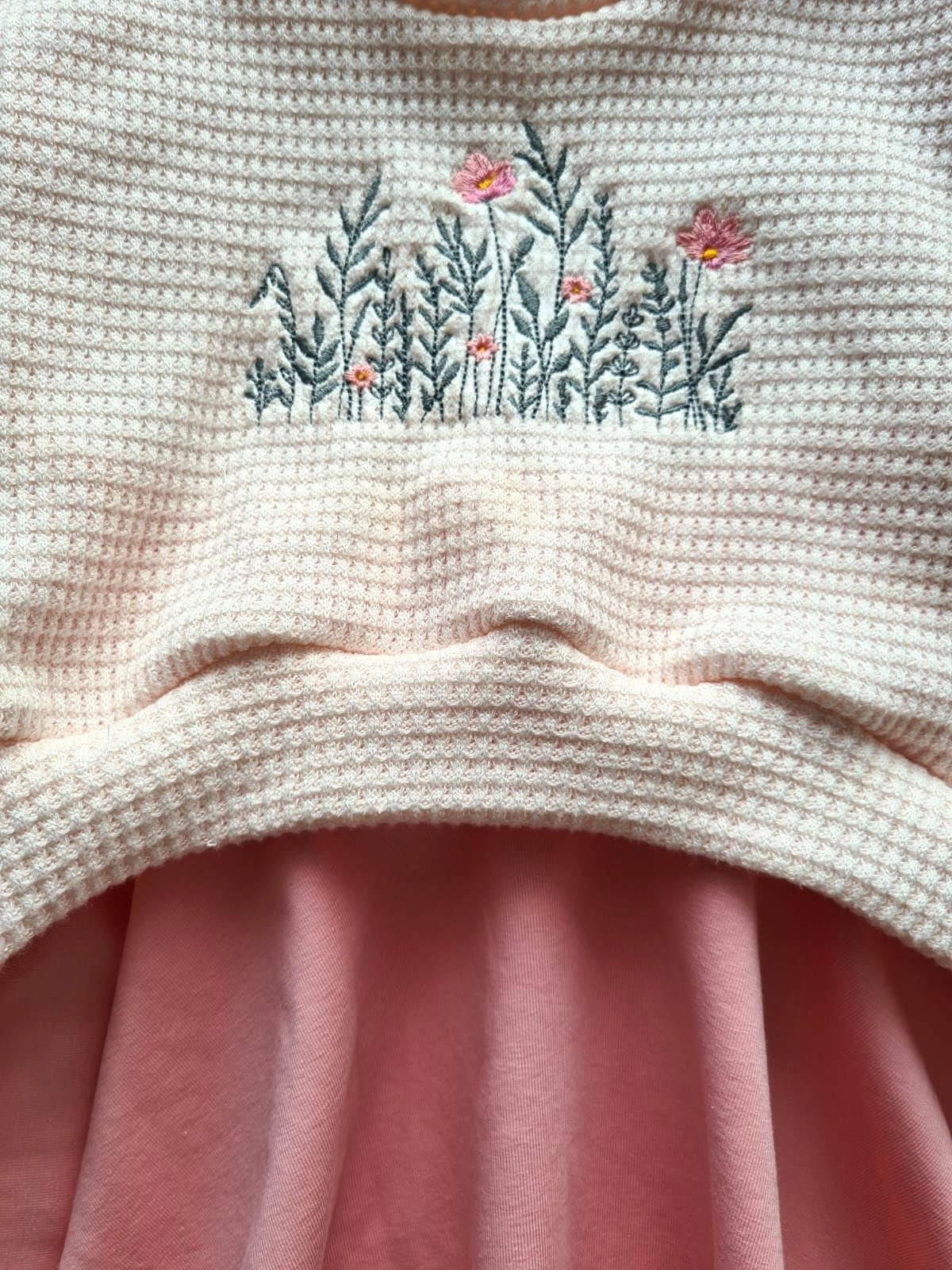 Dieser bezaubernde Outfit kombiniert einen strukturierten, weich fallenden Crop Sweater mit einem locker schwingenden Tellerrock in warmem Rosé. Die feine Stickerei auf der Brust setzt einen liebevollen Akzent und macht das Design zu etwas ganz Besonderem.
