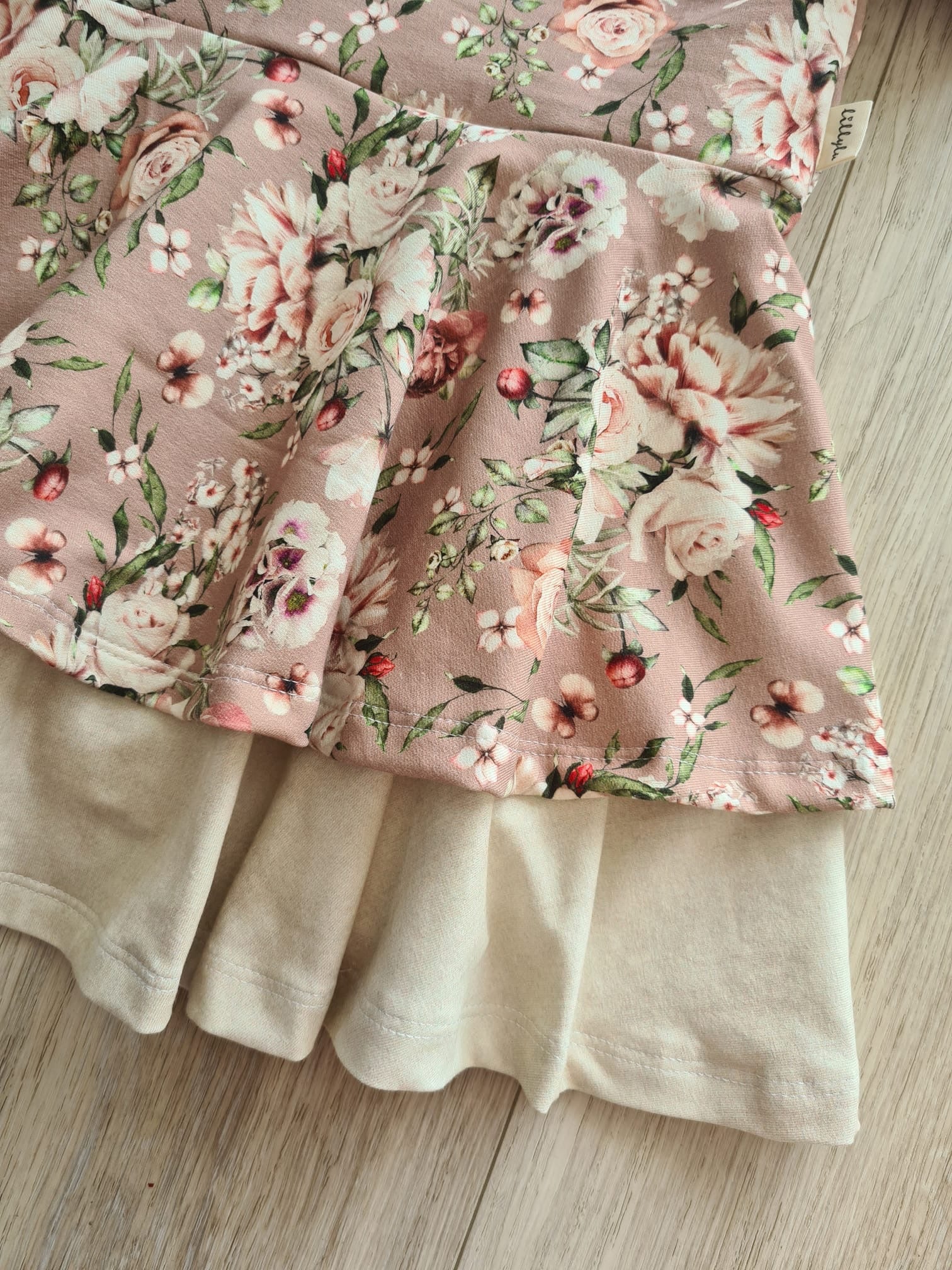 Dieses liebevoll gefertigte Zweierset besteht aus einer Peplum Tunika und einem passenden Stirnband im harmonischen Blumenprint. Die Tunika ist aus weichem Sommersweat genäht und bietet ein angenehmes, leicht wärmendes Tragegefühl – perfekt für Übergangszeit und kühlere Sommertage.